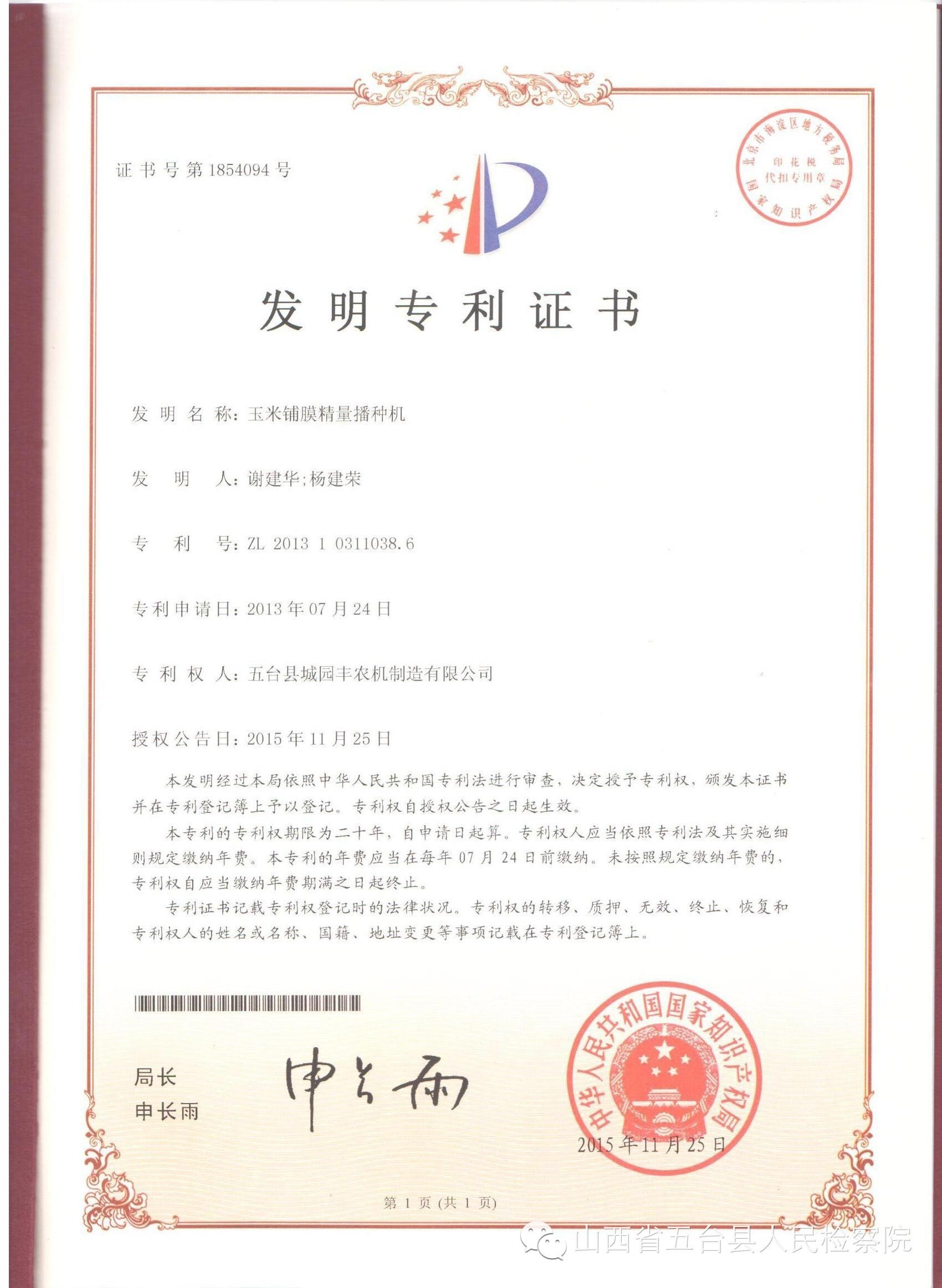 專利證書